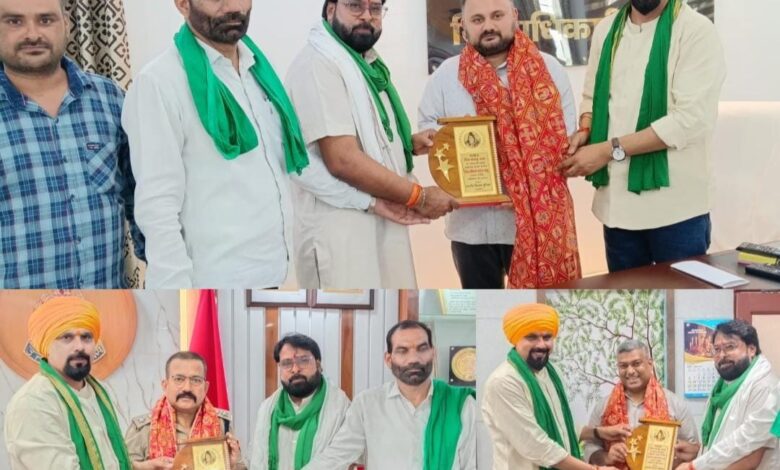 अंकित गुप्ता/ पुष्पेंद्र कुमार (ujagarkhabar.in) हापुड़ । भारतीय किसान यूनियन लोक हित के राष्ट्रीय अध्यक्ष चौधरी देवेंद्र सिंह बना व राष्ट्रीय प्रवक्ता हरीश हूण ने जिलाअधिकारी अभिषेक पांडेय,पुलिस अधीक्षक कुंवर ज्ञान्जंय व मुख्य विकास अधिकारी हिमांशु गौतम के नेतृत्व में कांवड़ यात्रा का हुआ सफल अयोजन पर उनको प्रतीक चिन्ह देकर सम्मानित किया। इस दौरान राष्ट्रीय अध्यक्ष चौधरी देवेंद्र सिंह बने ने कहा कि जिलाधिकारी अभिषेक पांडेय के नेतृत्व में जिला प्रशासन ने जिस समर्पण, निष्ठा और प्रेम भाव से कावड़ यात्रा का सफल आयोजन किया है जिला अधिकारी की कार्यशैली से संपूर्ण जनपद वासी अभिभूत है। सम्मानित करने वालों में भारतीय किसान यूनियन लोकहित राष्ट्रीय प्रवक्ता हरीश हूण के साथ में अंकुर चौधरी कुमार, दिनेश प्रधान व राजीव कुमार आदि उपस्थित रहे।