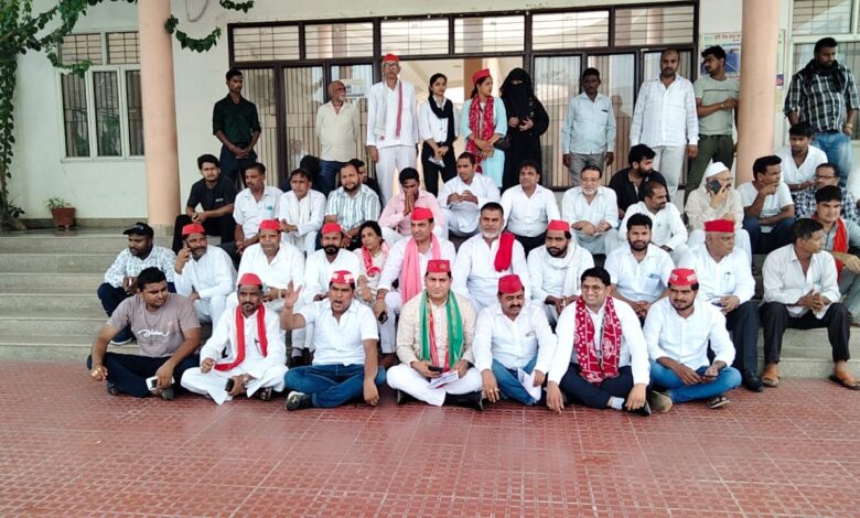 हापुड़ जिलाधिकारी कार्यालय पर समाजवादी पार्टी का जबरदस्त धरना प्रदर्शन।