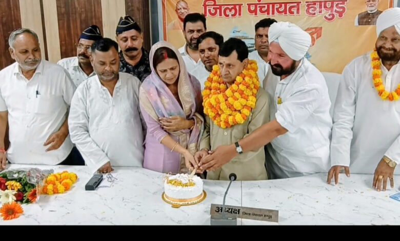 हापुड़। जिला पंचायत सभागार में आज एक ऐतिहासिक पल देखने को मिला, जब पूरे जनपद ने हापुड़ ज़िले का जन्म दिवस धूमधाम से मनाया। इस अवसर पर जिला बनाओ आंदोलन के संयोजक रहे डॉ. एस॰के॰ कौशिक को फूलों का गुच्छा व माला पहनाकर विशेष सम्मान दिया गया।