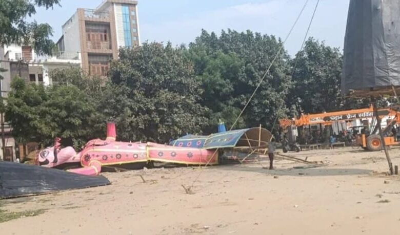 रामलीला मैदान में हड़कंप: दशहरे की तैयारियों के बीच गिरे रावण और मेघनाथ के पुतले